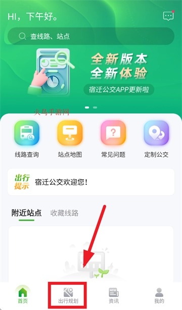 首先下载并安装宿迁公交app,安装完成后打开该应用。进入宿迁公交app首页,随后点击页面上的出行规划选项。
