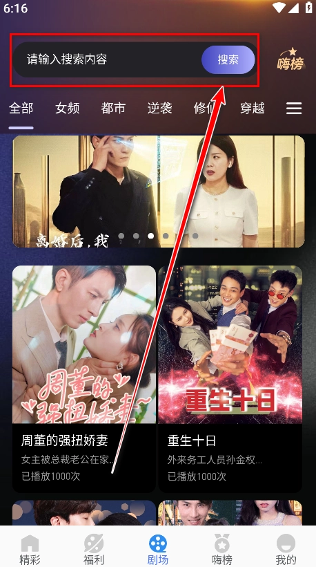 1请于本站下载嗨贝短剧app,点开首页上方搜索框,输入关键字后,点击右侧搜索按钮。