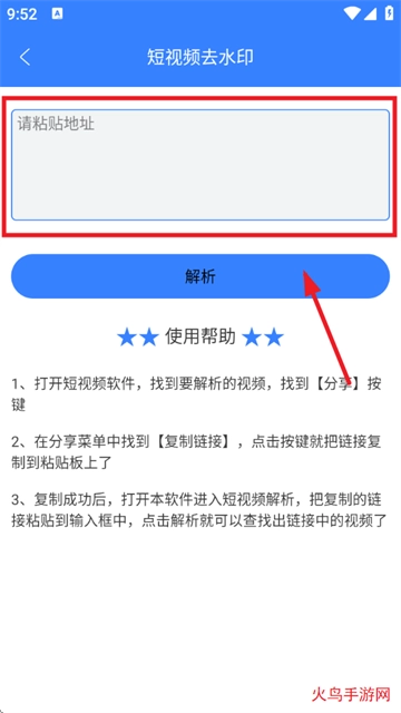 3、最后将复制的视频链接粘贴进去,点击解析即可。
