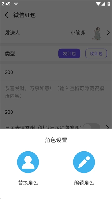 2、编辑收红包人和发红包人的资料