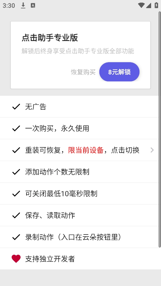 有一款屏幕点击辅助工具,它的安装包大小不超过0.3MB 。
