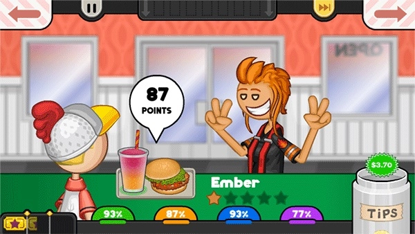 9、做完后,把餐点给顾客,顾客会给评分,分越高获得的金币越高。
