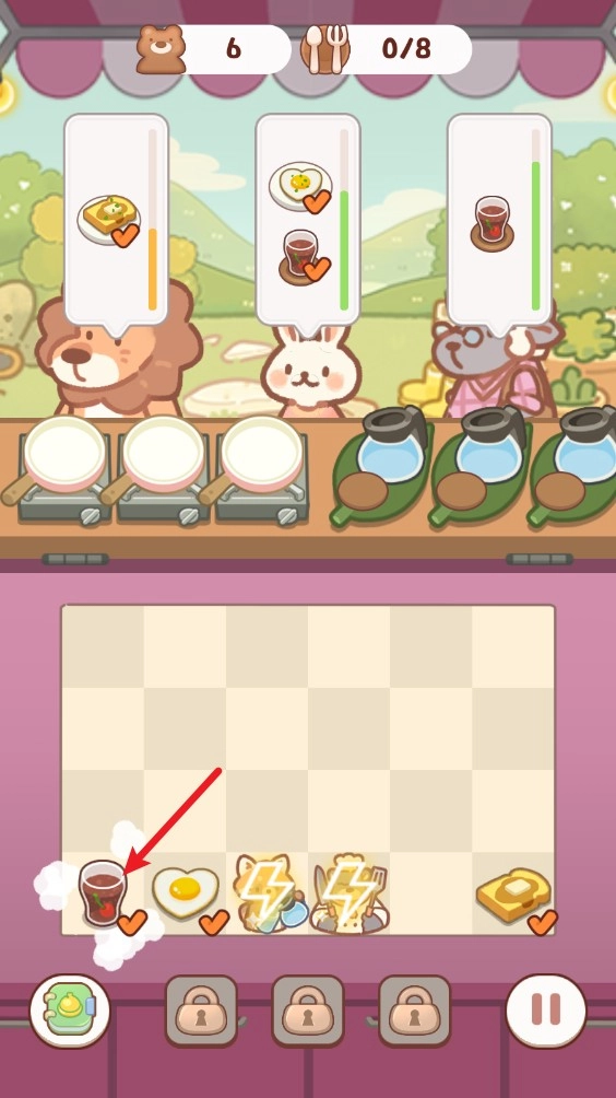 3、只需点击客人所需食物,就能将其放置到对应的位置进行加工,加工完成后便可端给客人。