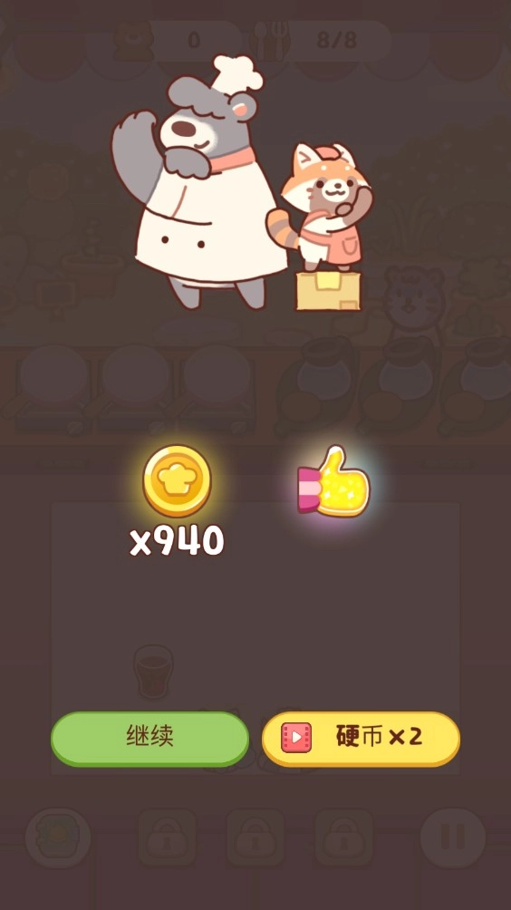 1在游戏里,点击狸猫可获取饮料,点击熊则能得到食物。
