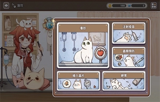 4、医院除了「看诊」还有「植入晶片」(植入晶片后猫咪走失才有机会可以被寻获)、「注射疫苗」(一生中只需要打一次,不打可能会生重病)、「虫类预防」(远离跳蚤)和「绝育」(预防疾病+有效控制猫咪的数量),是不是真的跟现实中的动物医院很像呀。