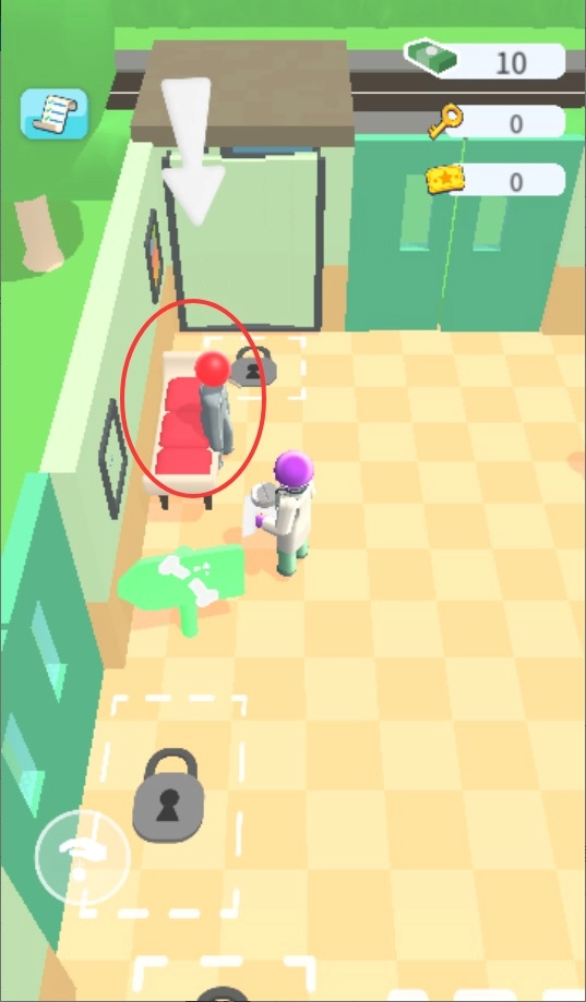 1、进入游戏后通过手指滑动屏幕控制医生角色移动,引导病人前往诊疗区域,熟悉基础操作流程。