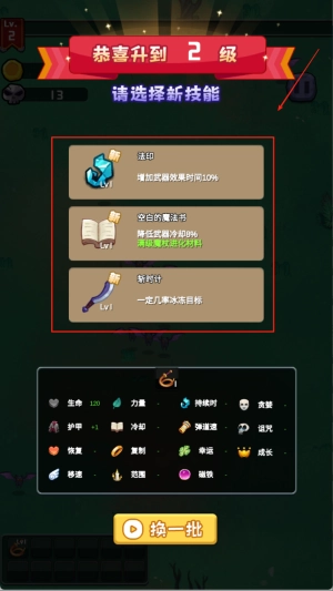 3、不断打怪升级,选择新的技能,让自己变的更加强大。