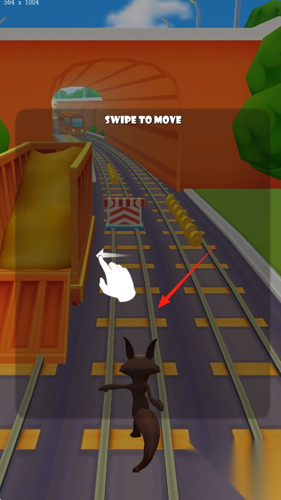 2、在轨道奔跑时,滑动屏幕,控制角色移动,躲避障碍。