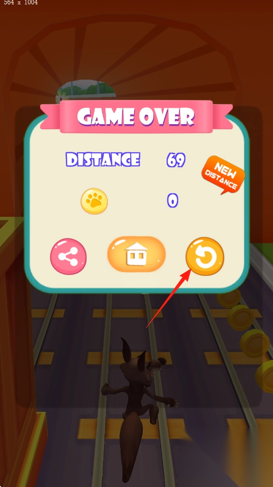 3、若游戏结束,点击重新开始按钮,再次尝试,挑战更远距离。