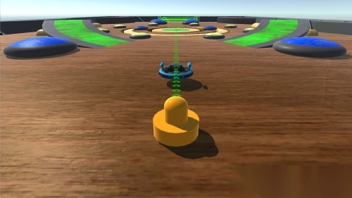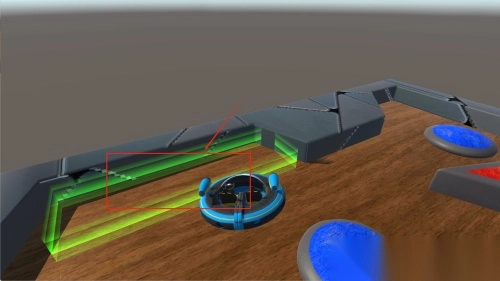 2、驾驶蓝色小车,使其靠近并接触场景里红框圈定的蓝色圆形道具,拾取该道具后,小车将获得特殊能力加成,进而提升车辆性能。