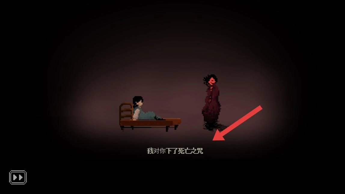 2、在“我对你下了死亡之咒”的剧情场景,需要继续点击屏幕任意的位置,推进对话与叙事。
