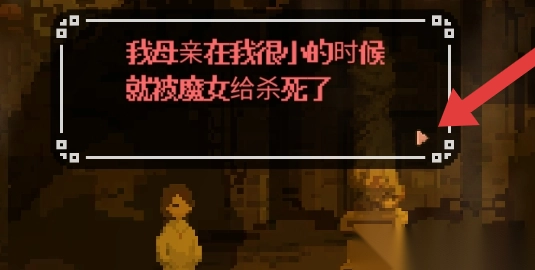 3、遇到文字叙事框(“我母亲在我很小的时候就被魔女给杀死了”),点击箭头图标,解锁后续背景故事与任务线索。