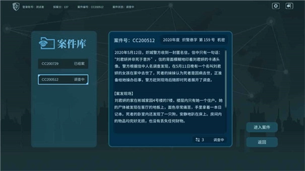 4、作为受测者的你,需要在系统规则下经历近似真实的案件过程,抽丝剥茧尽量不错过任何的细节。