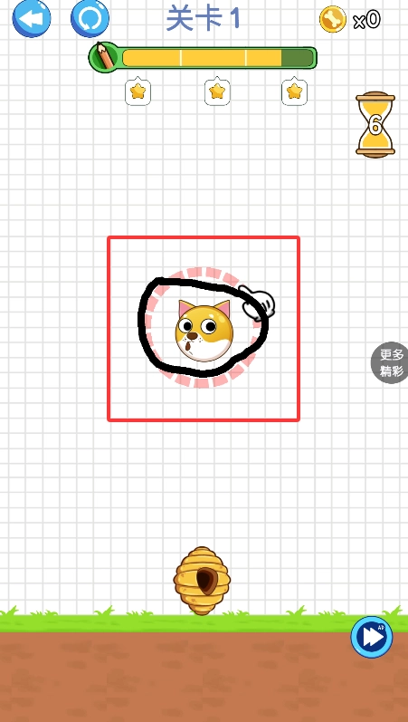 3、关卡设计充满奇思妙想,马蜂会从形形色色的刁钻角度蜂拥而至。玩家需开动脑筋,寻觅最优的划线方案,确保狗狗不被蜇伤。而且每成功通关一关,都会获得趣味动画作为奖励。