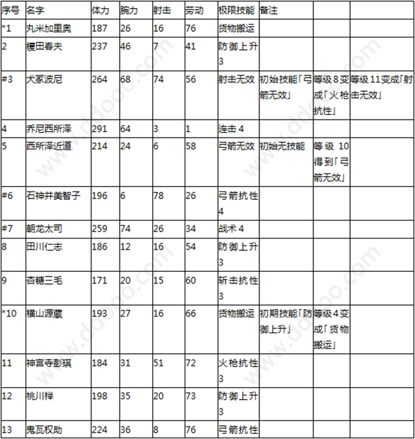 注意:下表中,序号前面有“*”号的表示最强战士,序号前面有“#”号的表示推荐战士。