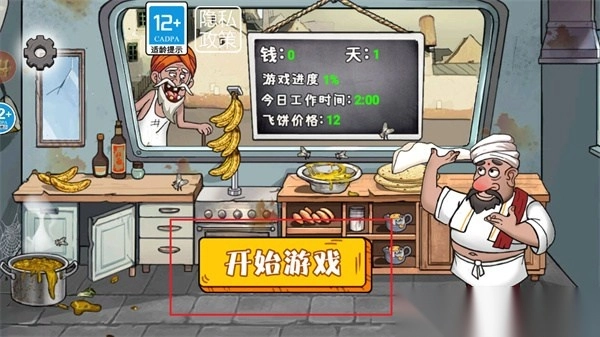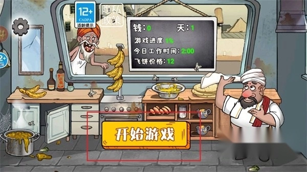 1、当玩家进入游戏场景后,首先要点击屏幕中的【开始游戏】按钮,从而正式开启煎饼贩卖之旅。
