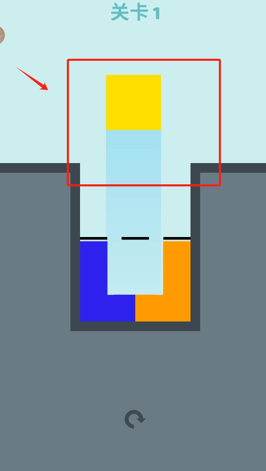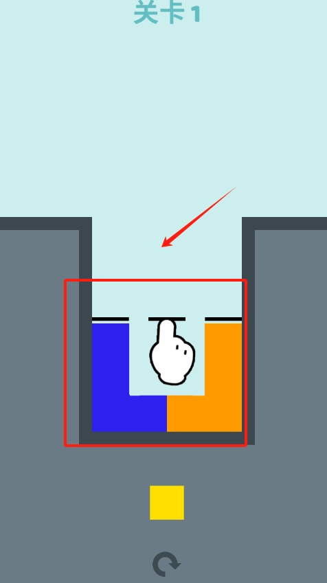 2、瞅见红框圈住的黄色方块和红箭头,按提示拖动彩色方块到指定位置完成关卡目标。