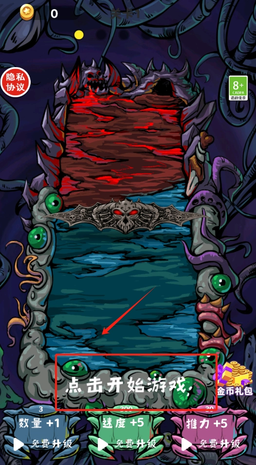 1 、看到暗黑界面中间红岩浆和点击开始游戏按钮,点它就能进入游戏开始对战啦。
