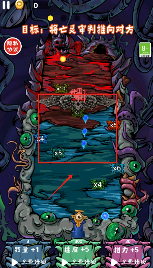 3 、瞧见带翅膀骷髅和倍数标识,调整角度滑动屏幕把亡灵审判推向对面阵营吧。