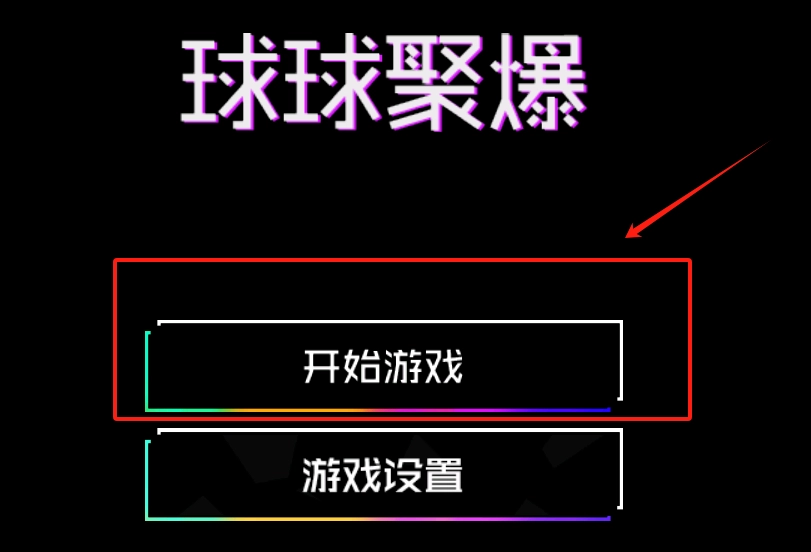 1、看到黑底紫字球球聚爆和红框开始游戏按钮,点这个彩色边框按钮就能进入游戏啦。