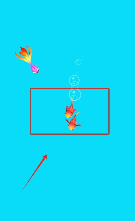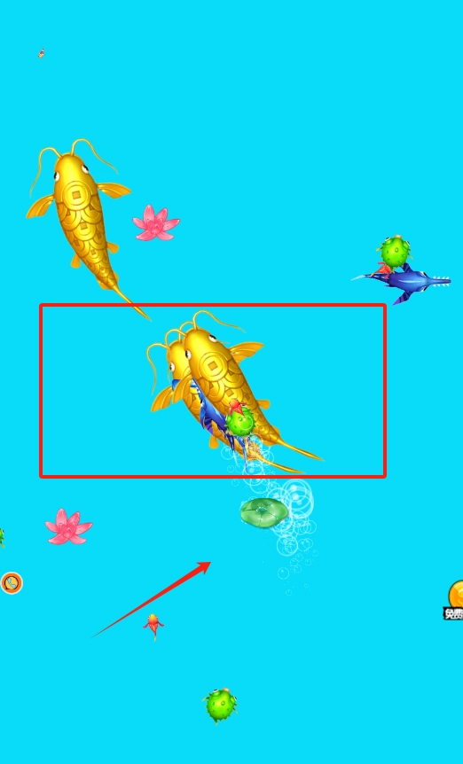 2、看那两条凑在一起的红框小鱼,用你的鱼去吃它们就能变大哦。
