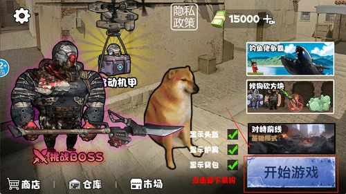 1、选择初始武器,游戏中开局会提供基础枪械或道具,根据当前地图情况挑选合适的装备开始战斗。