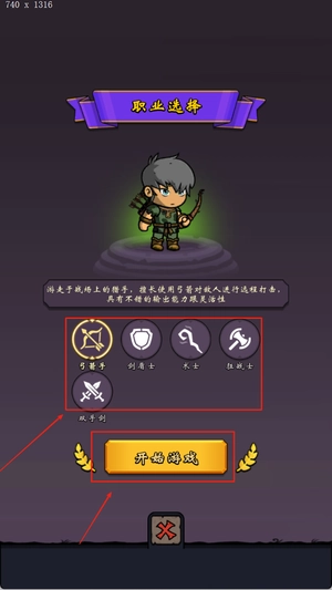 1、选择角色职业,游戏中提供了多种勇士类型供玩家挑选,根据自身喜好选择合适的初始职业开始地牢冒险。