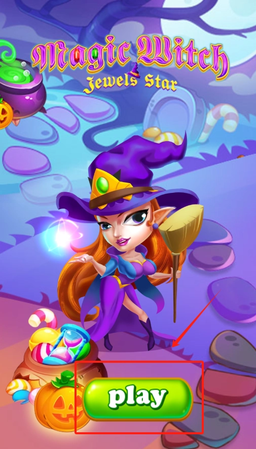 1当你看到戴着紫色尖顶帽的小女巫以及绿色的PLAY按钮时,点击这个按钮,就能顺利进入游戏开启闯关之旅咯。