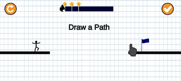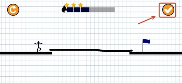 2、在游戏的第一关中,玩家需轻点屏幕绘制长线,以此助力火柴人跨越障碍。值得玩家留意的是,笔画长度存在限制,而且笔画越短,关卡所获星星就越多。