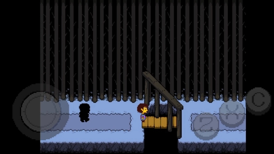 5、过一会儿,Toriel会暂时离开,玩家需要独自向前走。其实,她藏在出口的柱子后面,想要检验玩家的信任与独立能力。