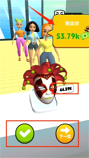 3、到达终点后,会有人依次对你的道具进行出价,你可以根据他们的报价选择是否卖出。
