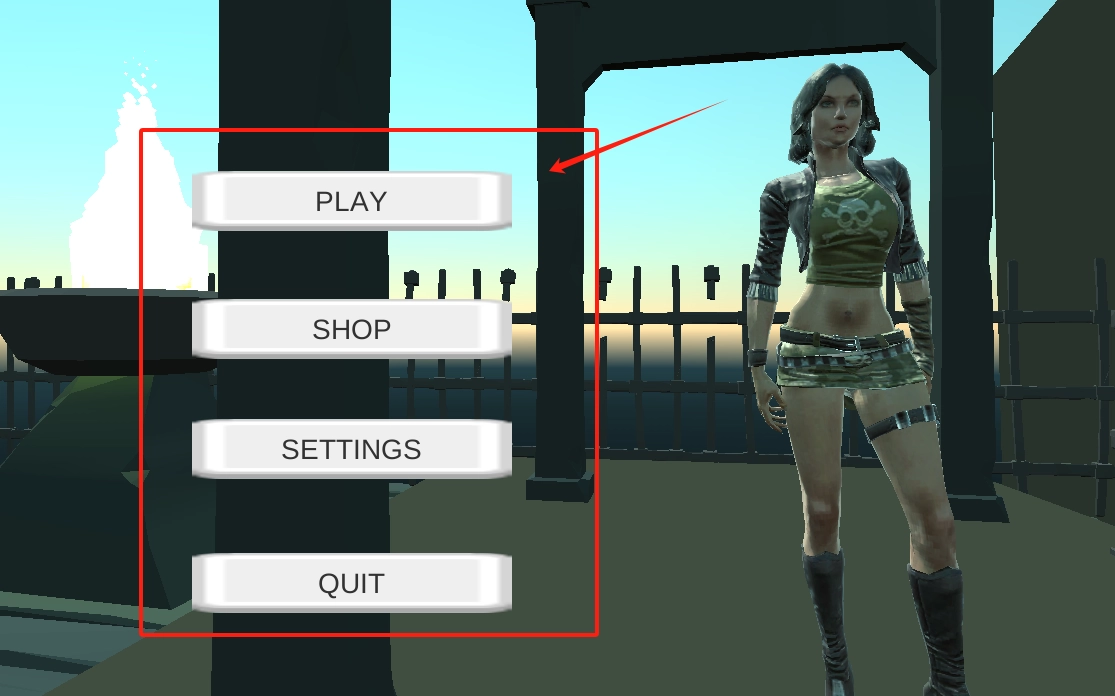 1、这页是游戏主界面,左下角四个白按钮排成竖条,红箭头指着PLAY,按它能直接开始游戏。