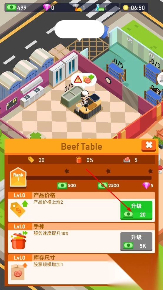 2、用经营收益升级灶台与食材仓库,解锁牛肉、海鲜等高级食材,研发新口味面食配方,同时装修店铺提升环境评分,吸引更多顾客光顾。