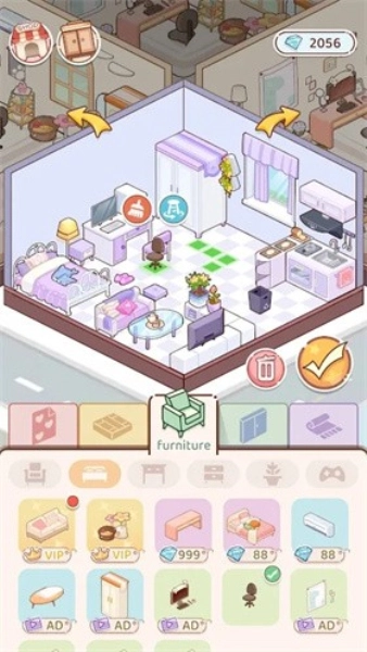 优优家装人生内购版游戏的整体画风极为卡通可爱。在这款游戏里,你能够对房屋内部展开装修,所有家具的摆放位置皆由你自行设计。此外,你还能接取他人发布的家装订单,完成订单后便可获取丰厚的游戏奖励。而且在内购版中,商店里的所有物品都能随意使用。