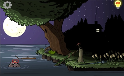 3、待树枝落入河中后,再次点击,使虫子转移到树枝上。