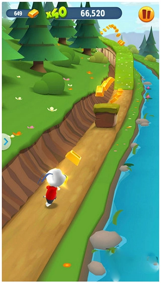 3、就跑酷玩法而言,本作并没有太多新颖之处。玩家仅需滑动屏幕,就能使角色在场景中实现左右移动、上跳下滑。场景依旧设计了三条跑道,供玩家进行游戏。操作方面,和其他同类游戏并无二致,都是在场景中收集金币与道具。但关键在于,游戏模式并未采用常见的关卡模式,而是以无限模式供玩家挑战。收集到的金币可用于购买建设房屋的素材,从而建造房屋。