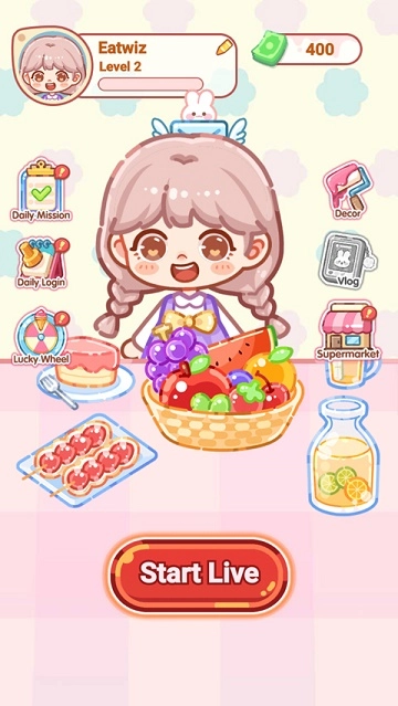 3、为Coco换上超萌服饰,无论是可爱的小兔子玩偶套装,还是闪耀的人鱼公主服,全都一应俱全!不仅如此,你还能用各类装饰来装点你的直播间呢。