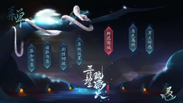 3、在菜单页,可通过【添加书签】与【读取书签】来管理游戏进度;借助【剧情回放】重温游戏内容;利用【系统设置】调整游戏体验;还能逛逛【鲜花商城】,查看【角色属性】和【男主好感】,以此推进游戏进程。