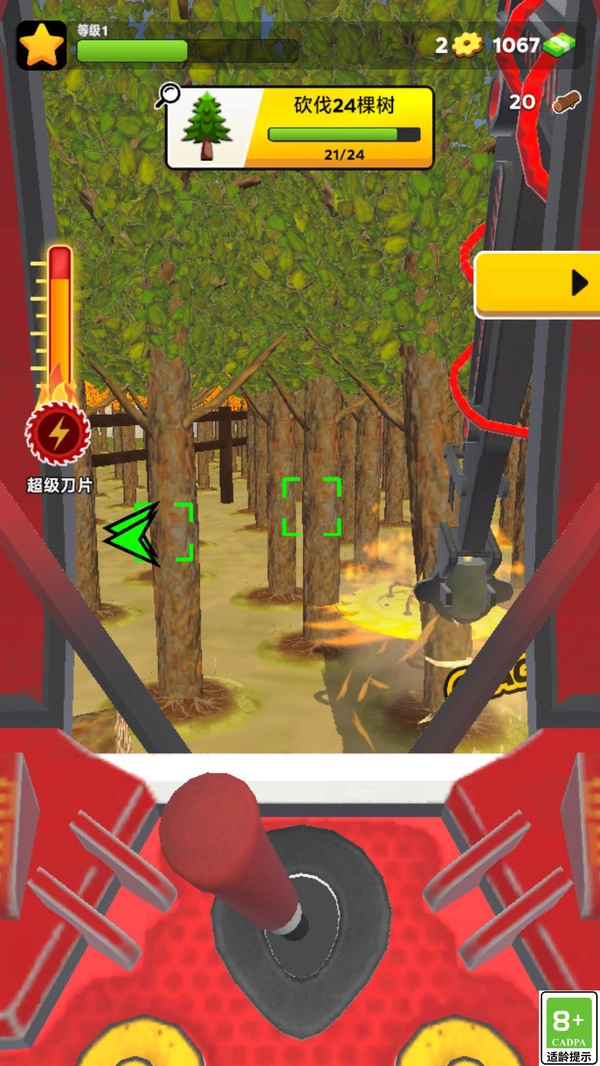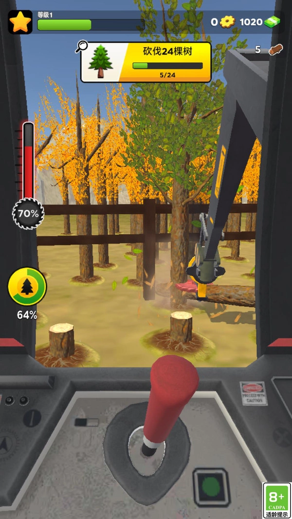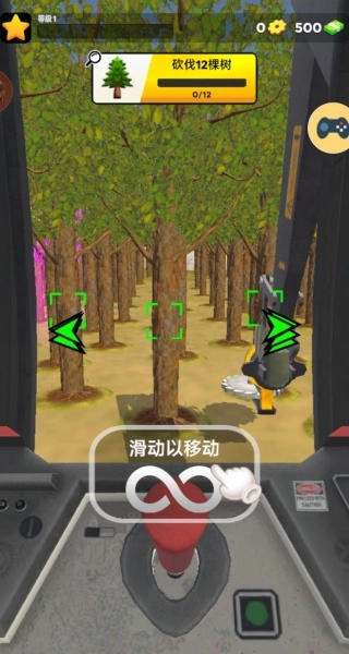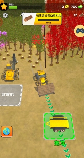 2、执行系统下达的任务,砍伐12棵树木,通过操控你的机械来完成此操作。