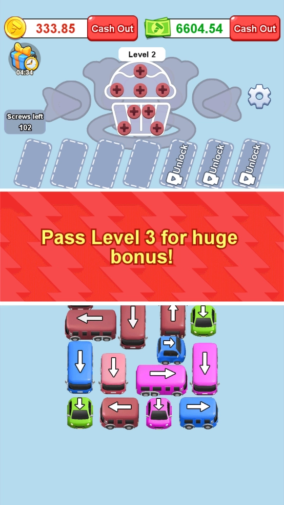 在该游戏里,玩家得凭借逻辑思维与策略,复杂的交通谜题,解救被困的汽车,借助这些汽车来运送螺丝,并拆解各类精致的模型。