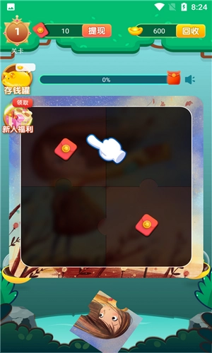 1. 开启游戏,参与拼图挑战。每个关卡设有时间限制,需迅速完成拼图任务,即可领取对应的红包奖励。