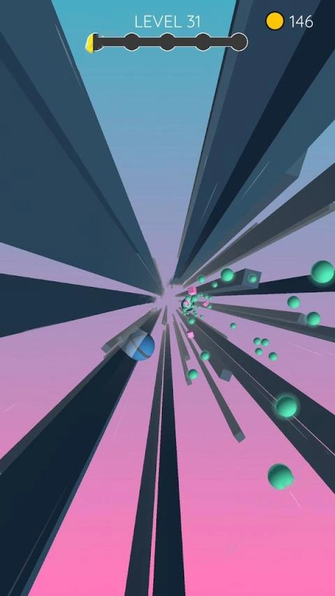 在游戏过程中,需要巧妙躲避形形色色的方块体,随着游戏推进,节奏会逐渐加快。玩家收集到的小球数量越多,所能获取的分数也就越高。