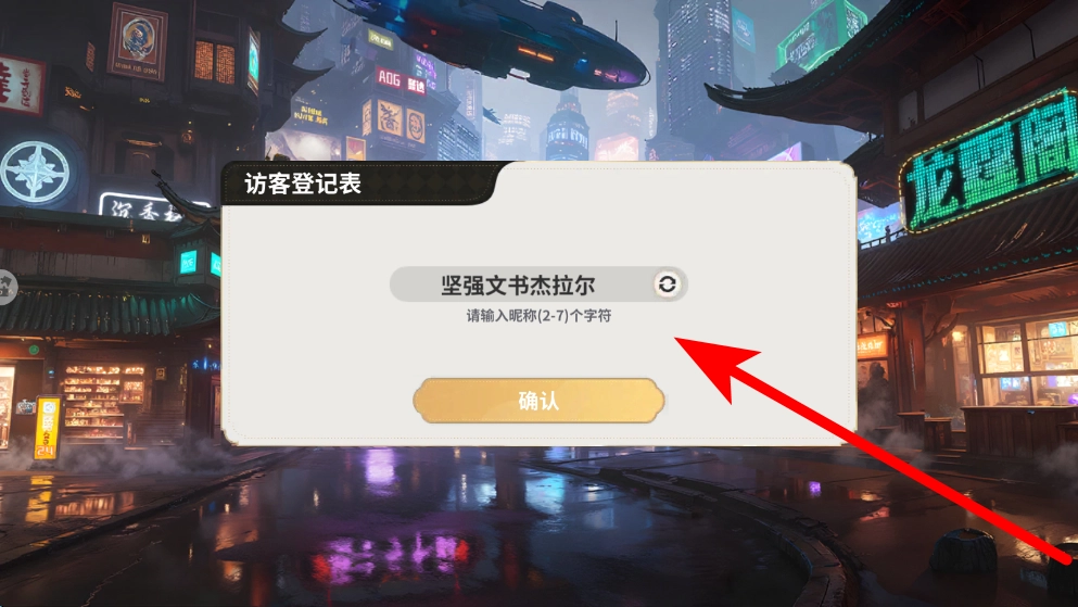 1. 第一步,着手角色创建的昵称设定工作。先找到输入昵称的区域,依据提示输入2至7个字符长度的昵称,接着点击确认按钮,如此便完成了昵称设定,随即开启游戏旅程。