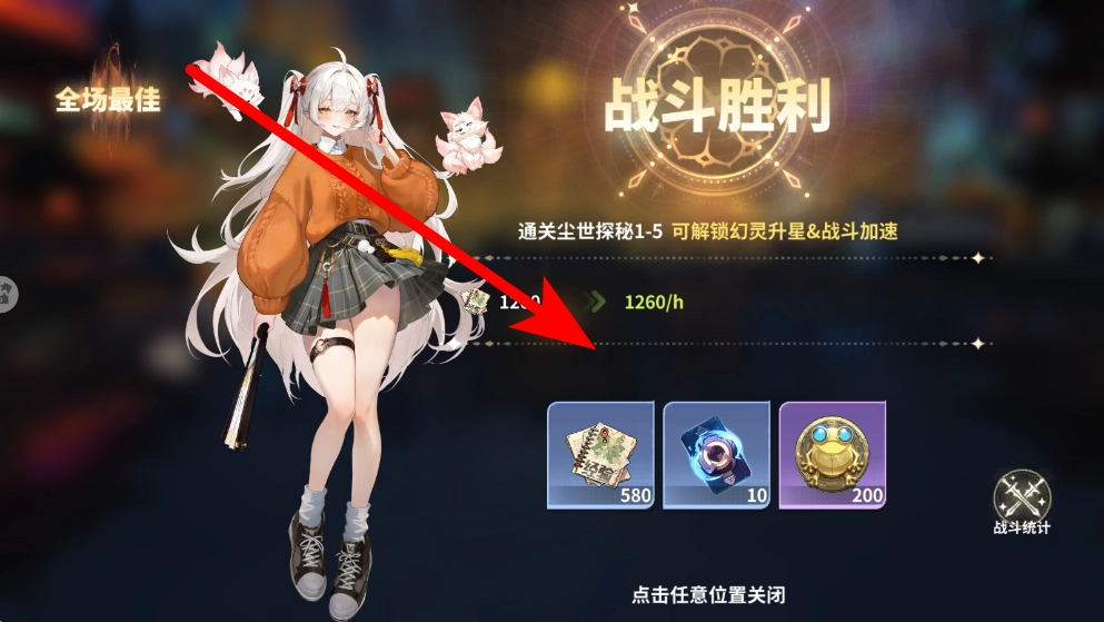 4、战斗胜利后,即可获取胜利奖励。届时会弹出战斗胜利界面,玩家能在此界面获得各类奖励,比如特定数量的道具。点击界面任意位置,就能关闭该界面,进而继续后续内容。