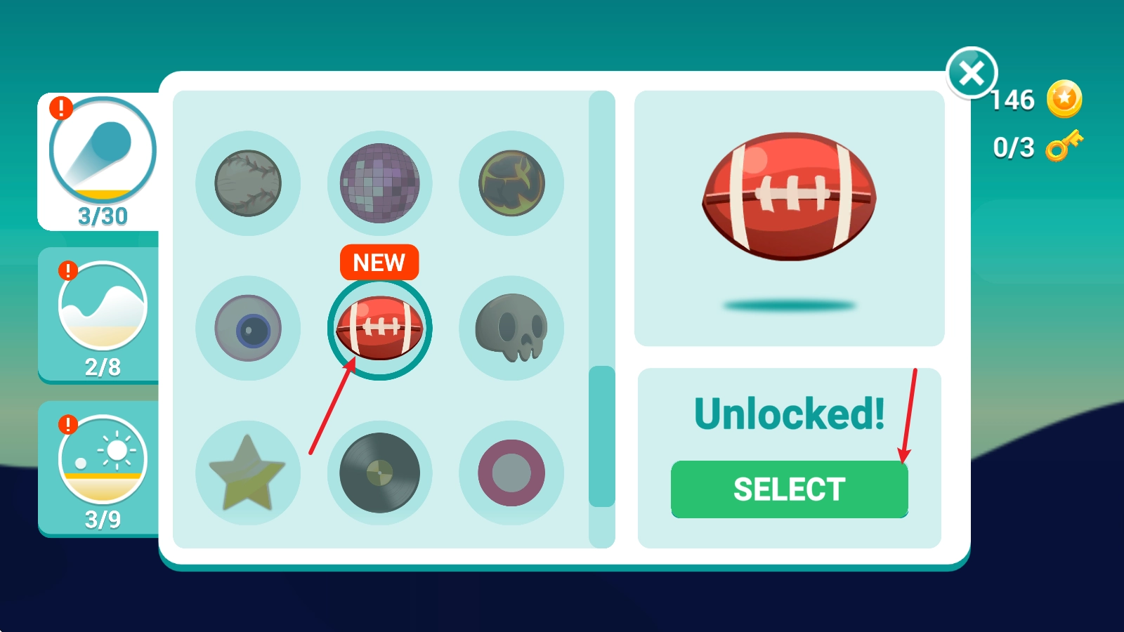 2. 接下来,我们挑选小球的皮肤,随后点击右侧的按钮进行切换。