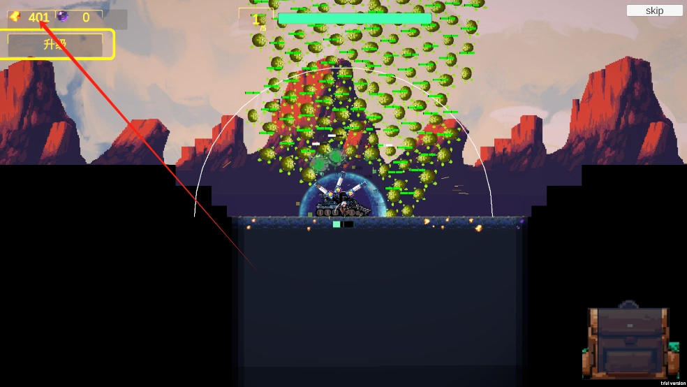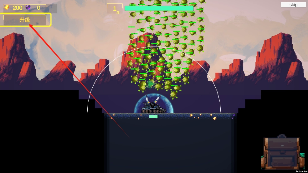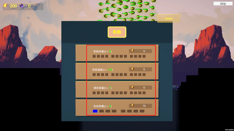 初始时,武器的火力较为有限。玩家能够通过收集金币,对武器属性进行升级,以此提升输出强度,从而有效应对高强度的敌潮。