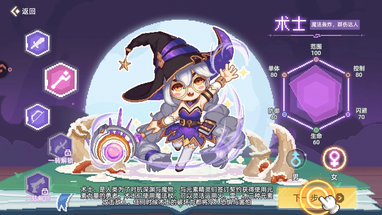 2、术士:具备远程攻击能力,且能持续施展法术攻击。