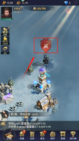 2. 接着点击如图所示的旗帜,开启关卡战斗。