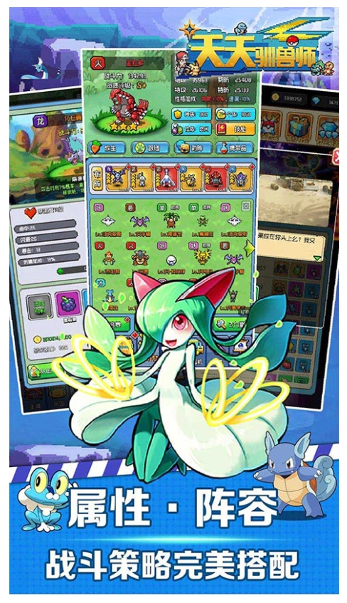 2、海量系列宝可梦精灵搭配丰富多样的培养玩法,训练师天赋可自由加点,助力玩家与精灵携手共进。此外,萌宠之间属性存在克制关系,战斗时需巧妙搭配,方能展现强大实力,击败敌人。