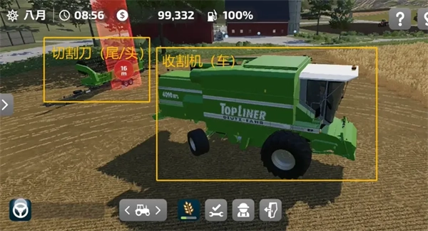 大多数农用车辆由主体车身与功能配件这两部分构成。以一台完整的收割机为例,它一般包含收割车本体以及后挂的收割刀(比如型号为4090的收割刀)。玩家通过“连接”选项,能够自由搭配不同部件,以满足各类场景的需求。